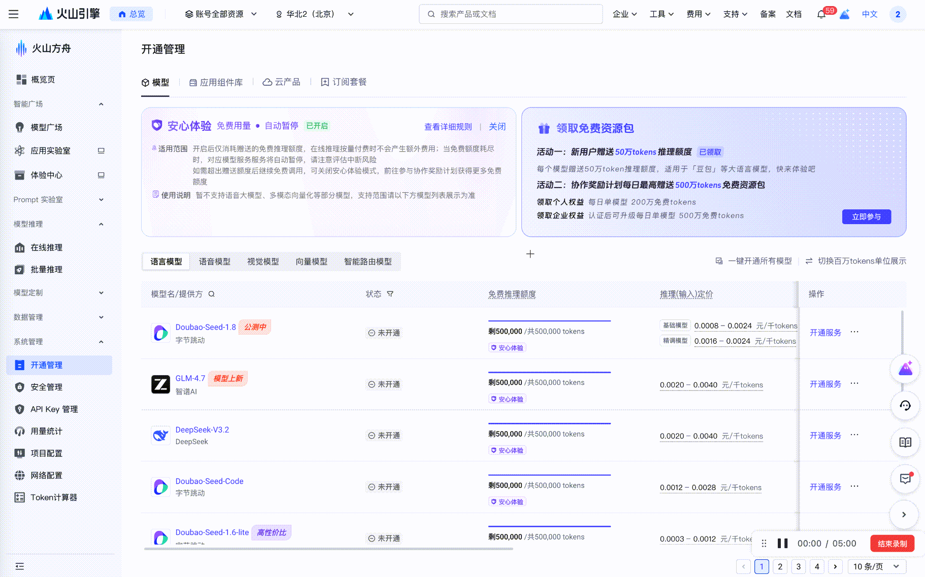 Note: Model versions may be updated, please refer to the Volcano Ark Console for the latest information.